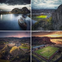 Pack of four high quality coasters, each with a different view of Dumbarton FC's iconic stadium in the shadow of the Rock